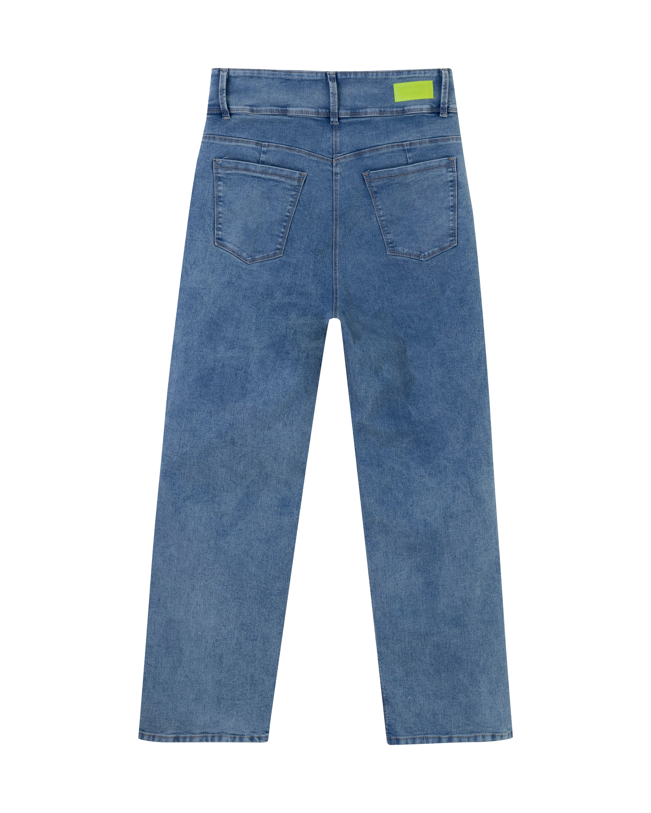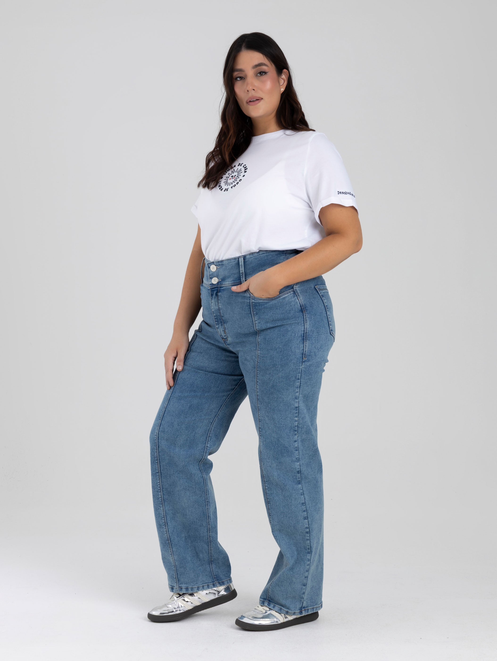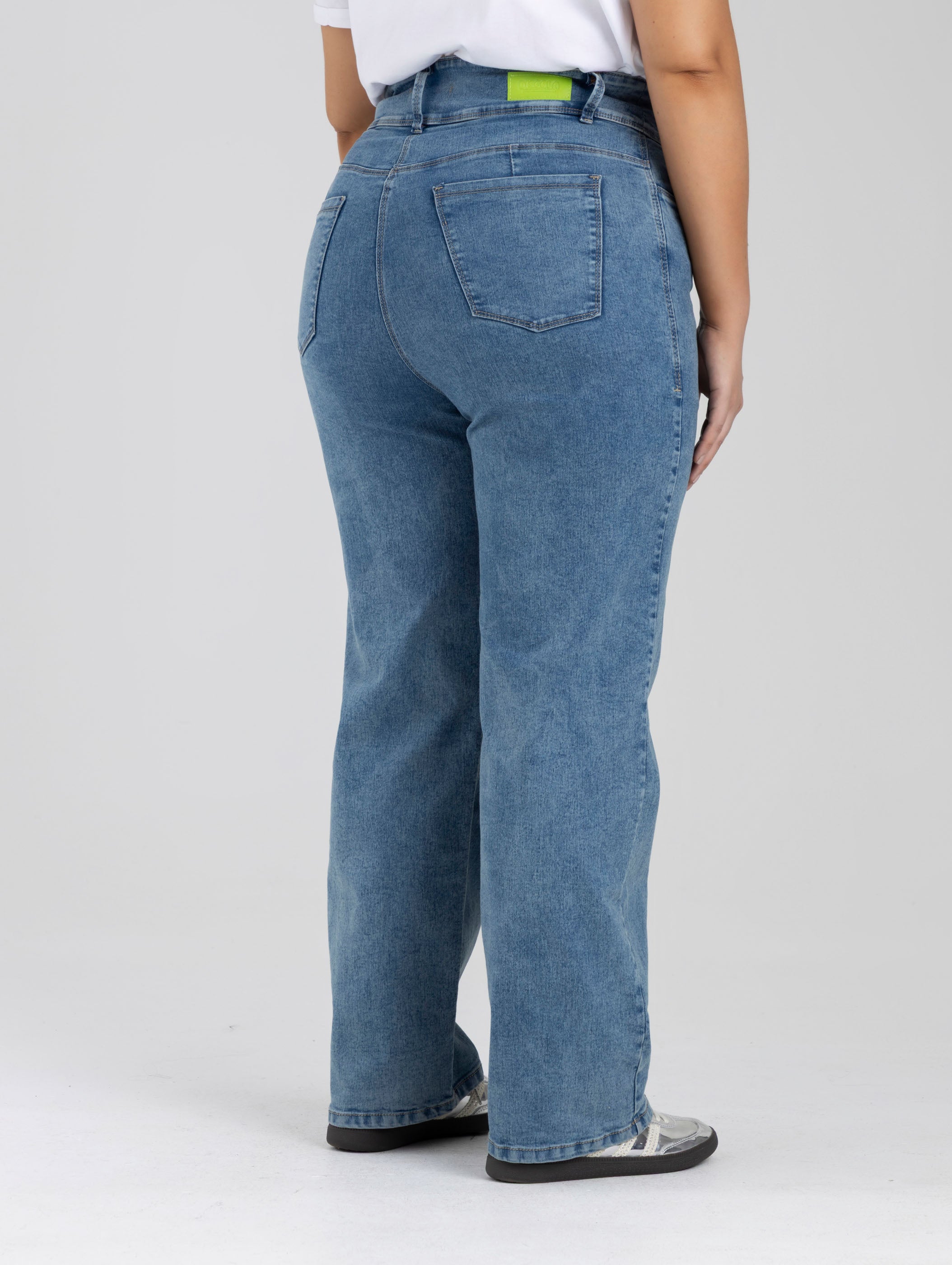 Tiene bolsillos delanteros y traseros amplios, perfectos para quienes aman usar bolsillos. Su bota recta nace de escuchar a nuestras Díscola Queens que pedían un jean cómodo y versátil.