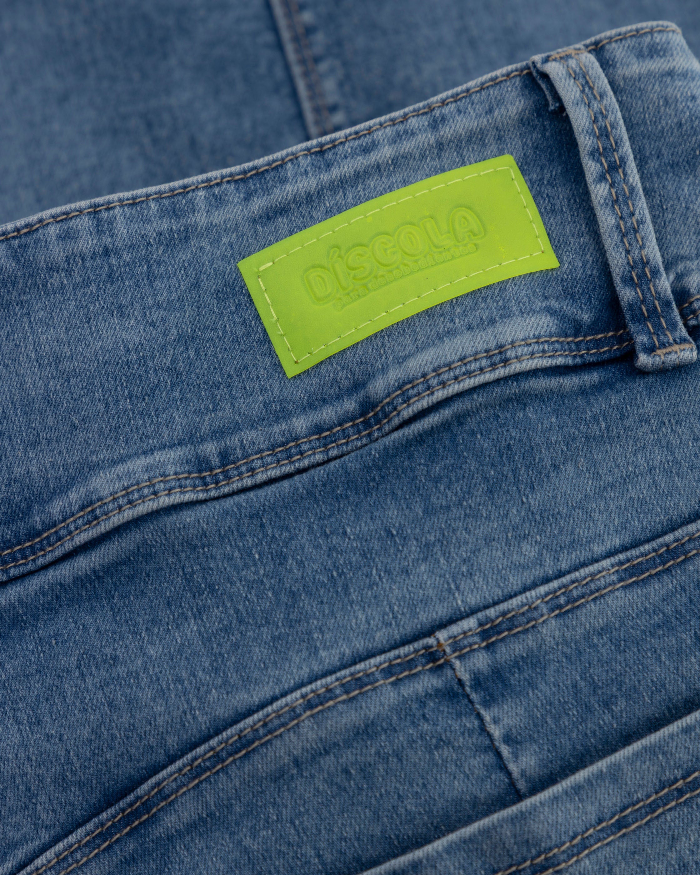 Nuestro Jean Calixto es el básico que no es básico. Color azul lavado, con pretina ancha y doble botón, sello distintivo de Díscola para dar soporte y comodidad real en el abdomen.
